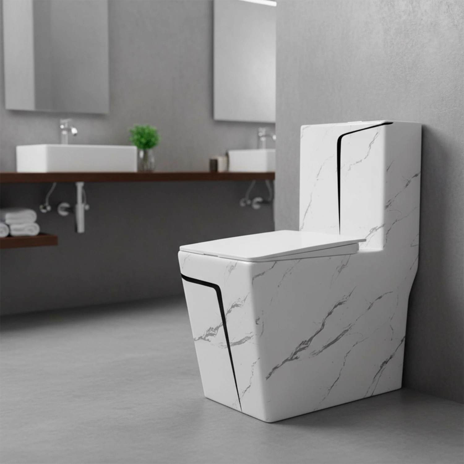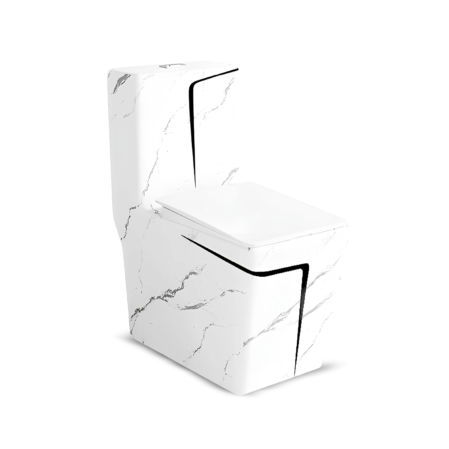 Inodoro Minimalista One Piece Marmoleado Blano y Negro